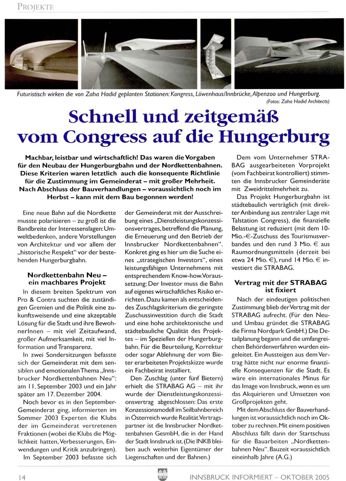 für den Neubau der Hungerburgbahn und der Nordkettenbahnen.