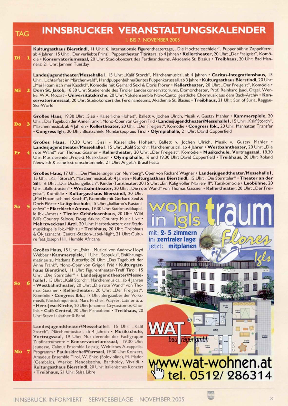INNSBRUCK INFORMIERT - SERVICEBEILAGE - NOVEMBER 2005