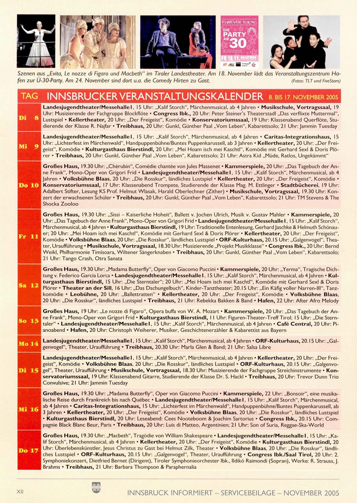 INNSBRUCK INFORMIERT - SERVICEBEILAGE - NOVEMBER 2005