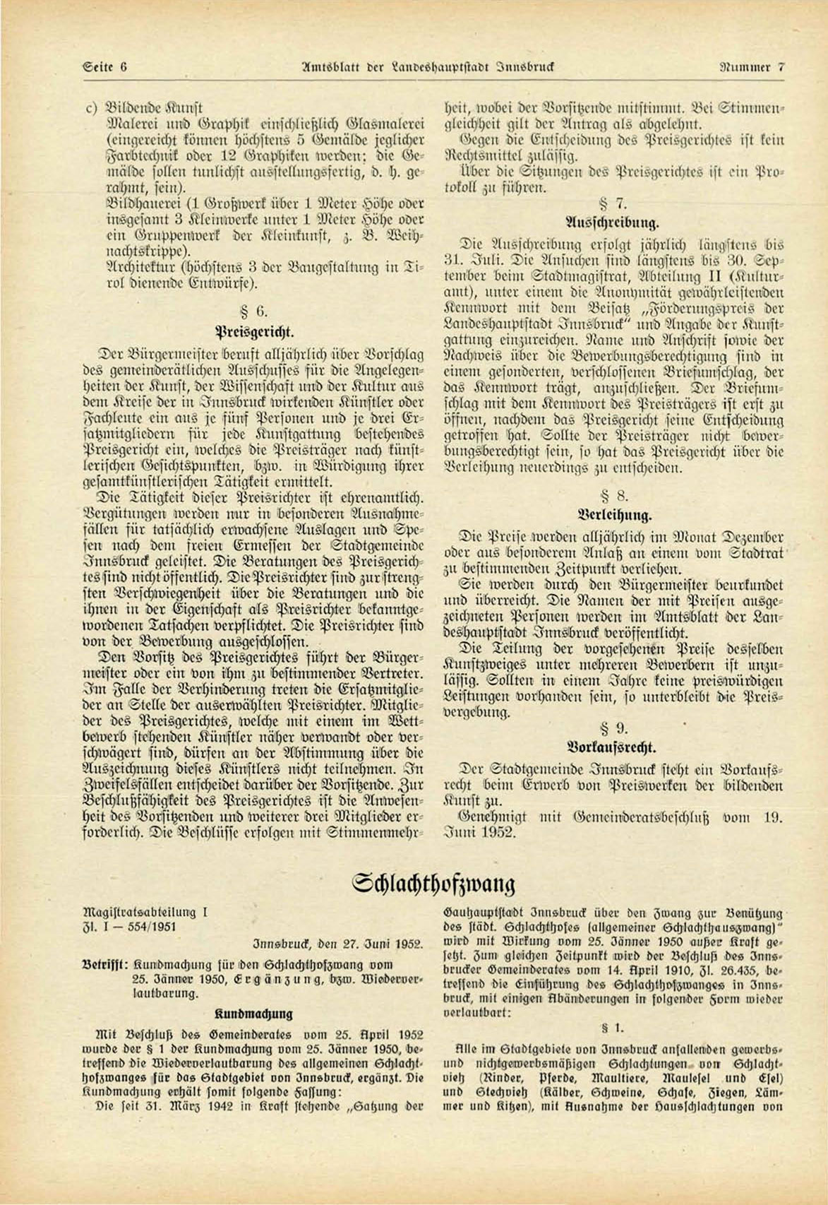 Der Stadtgemeinde Innsbrnck steht ein Vorkaufsrecht beim Erwerb voli Preiswerken der bildenden