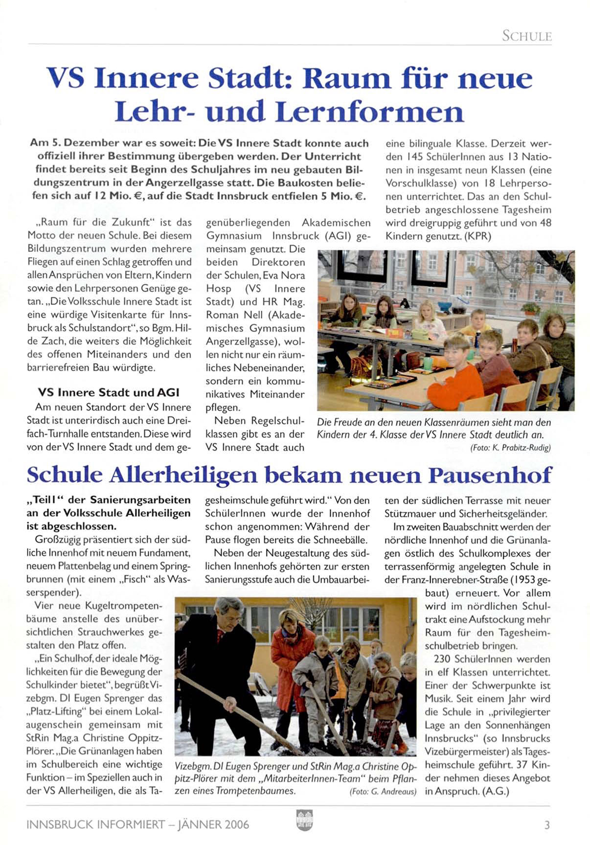 eine würdige Visitenkarte für Innsbruckais Schulstandort",so Bgm. Hilde Zach, die weiters die Möglichkeit