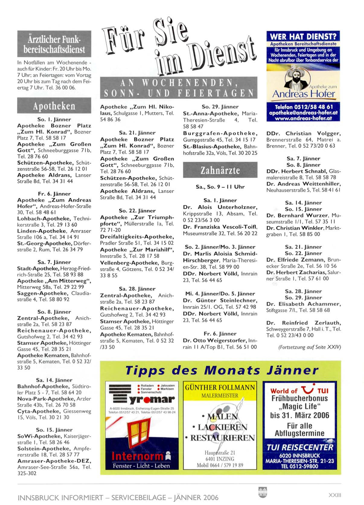INNSBRUCK INFORMIERT - SERVICEBEILAGE - JÄNNER 2006