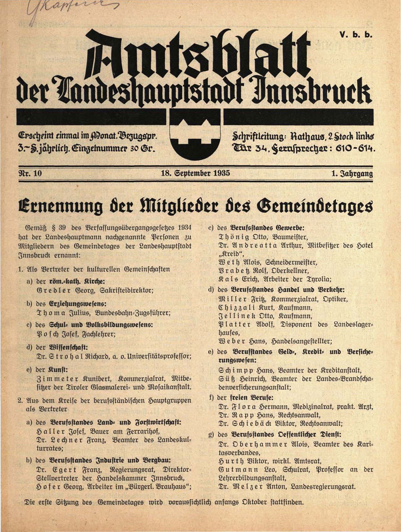Dr. E g e r t Franz, Regierungsrat, DirektorStellvertreter der Handelskammer Innsbruck,