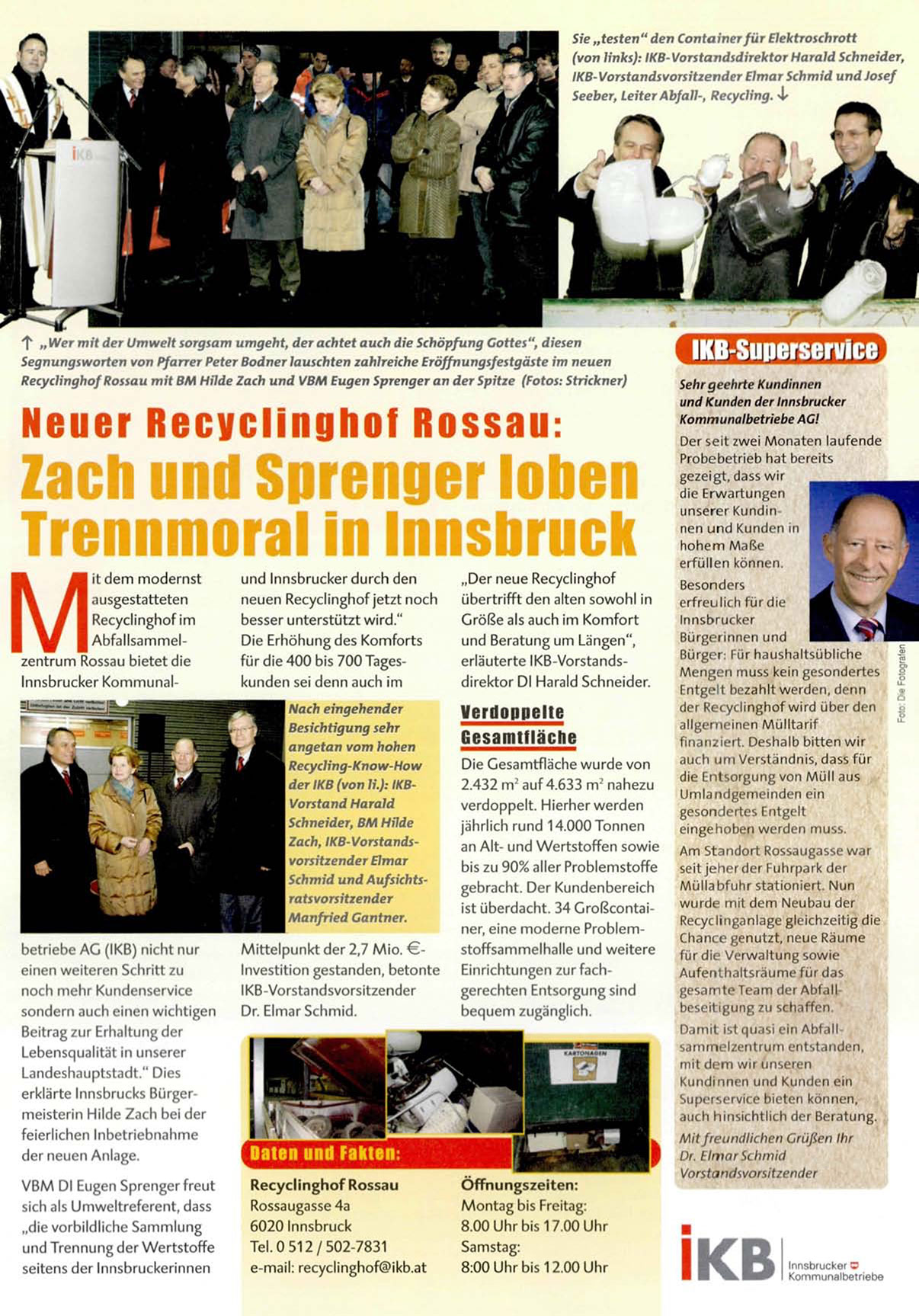 Recyclinghof Rossau mit BM Hilde Zach und VBM Eugen Sprenger an der Spitze (Fotos: Strickner)