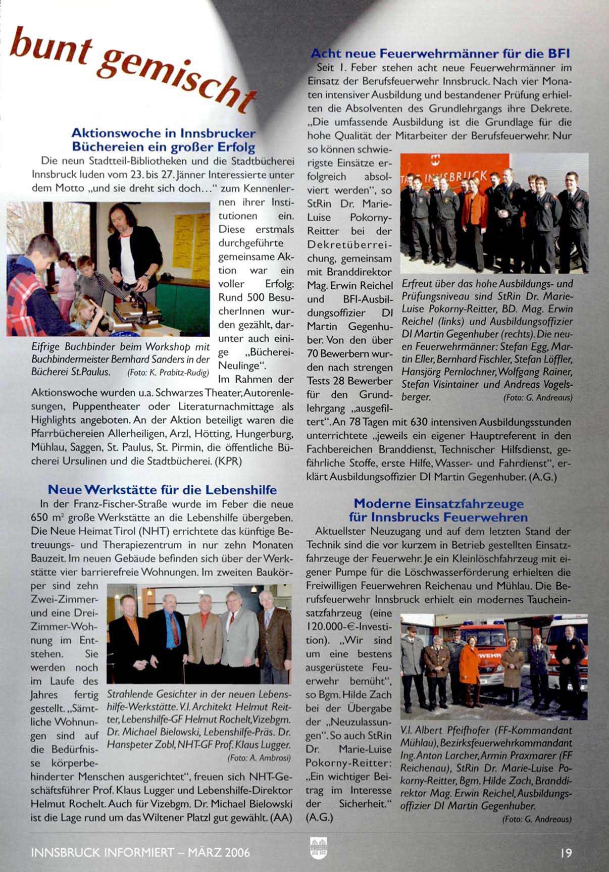 Freiwilligen Feuerwehren Reichenau und Mühlau. Die Berufsfeuerwehr Innsbruck erhielt ein modernes Taucheinsatzfahrzeug (eine