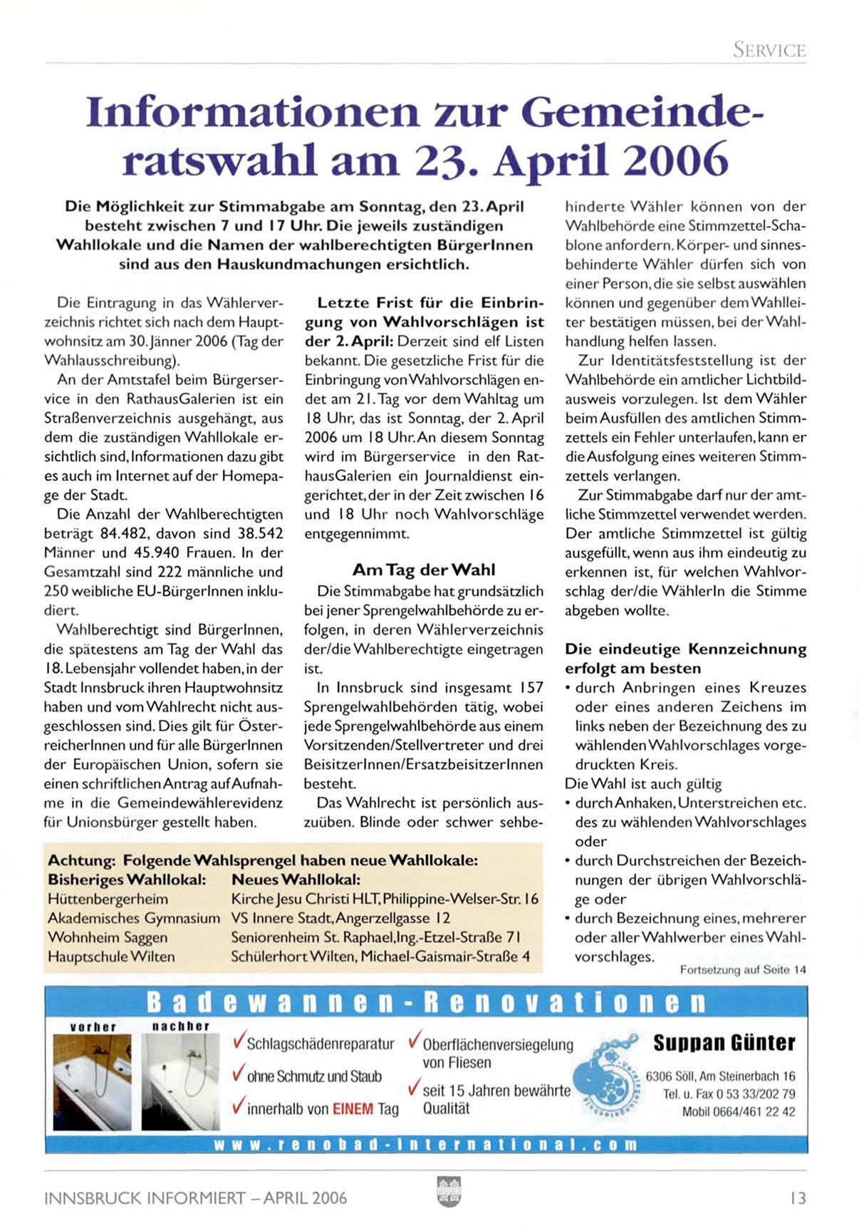 Informationen zur Gemeinderatswahl am 23. April 2006