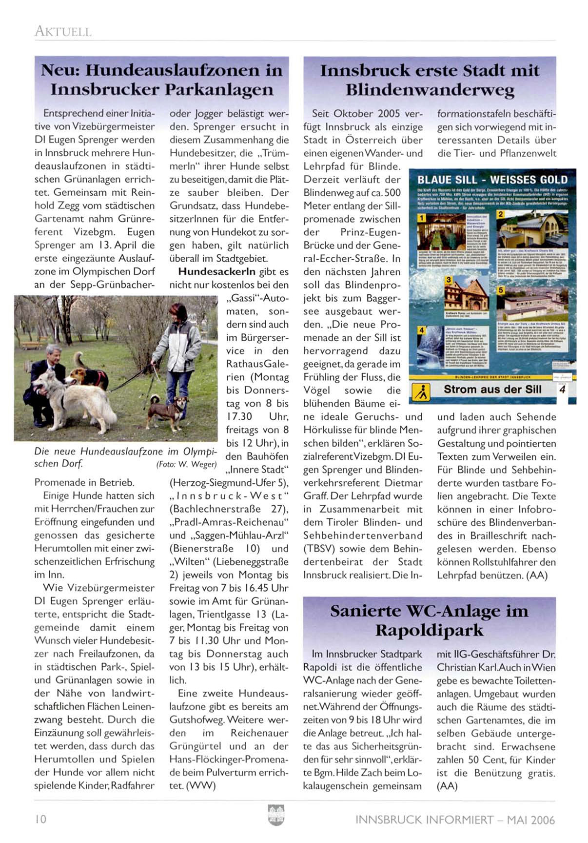 in Innsbruck mehrere Hundeauslaufzonen in städtischen Grünanlagen errichtet. Gemeinsam mit Reinhold Zegg vom städtischen