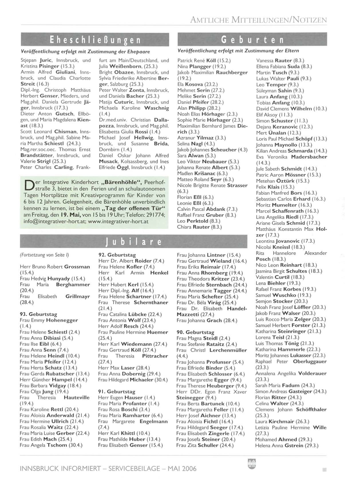 INNSBRUCK INFORMIERT - SERVICEBEILAGE - MAI 2006
