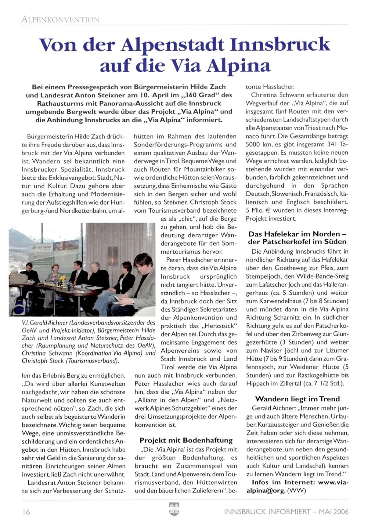 die A n b i n d u n g Innsbrucks an die „ V i a A l p i n a " i n f o r m i e r t .