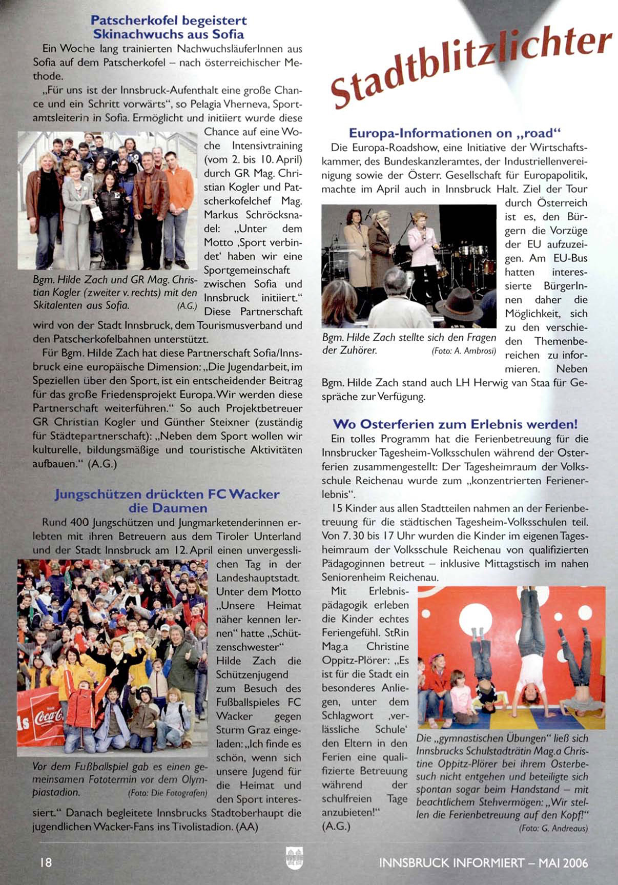 Für Bgm. Hilde Zach hat diese Partnerschaft Sofia/Innsbruck eine europäische Dimension:,,Die Jugendarbeit, im