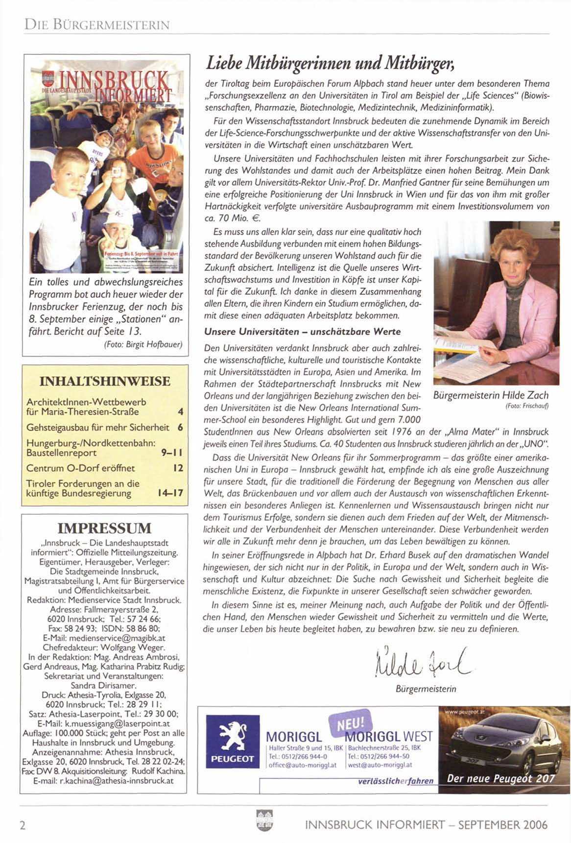 INNSBRUCK INFORMIERT - SEPTEMBER 2006