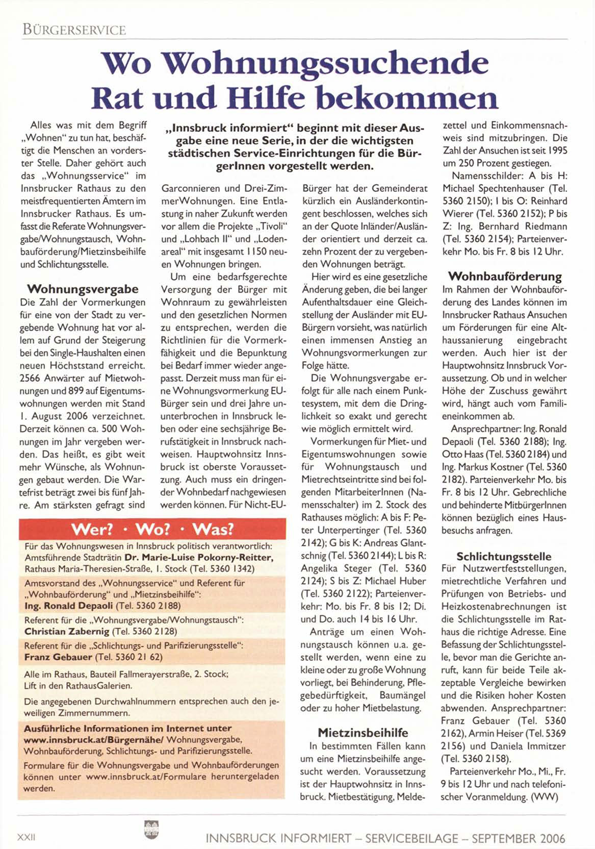 I N N S B R U C K INFORMIERT - SERVICEBEILAGE - SEPTEMBER 2006