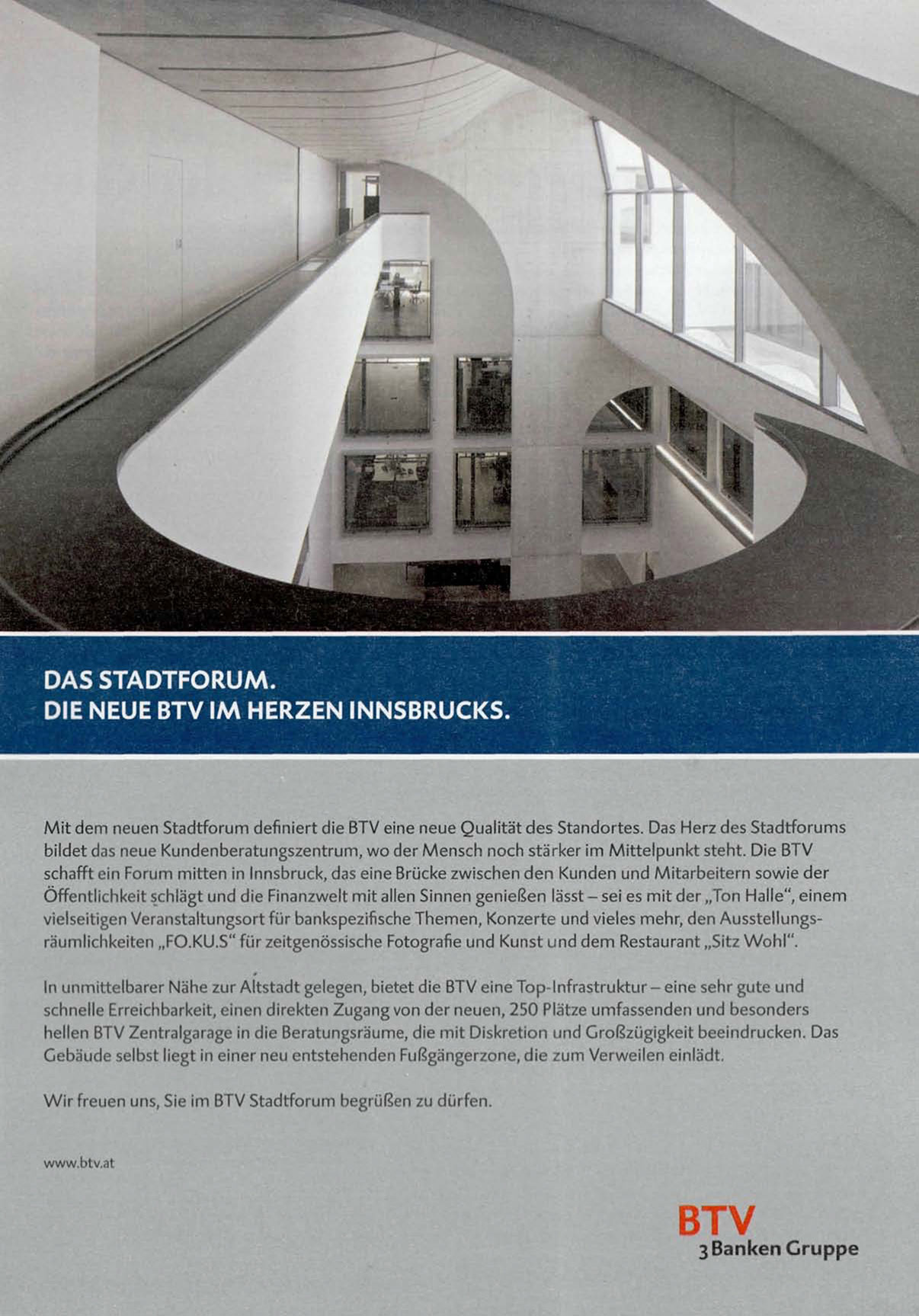 M i t dem neuen Stadtforum definiert die BTV eine neue Qualität des Standortes. Das Herz des Stadtforums