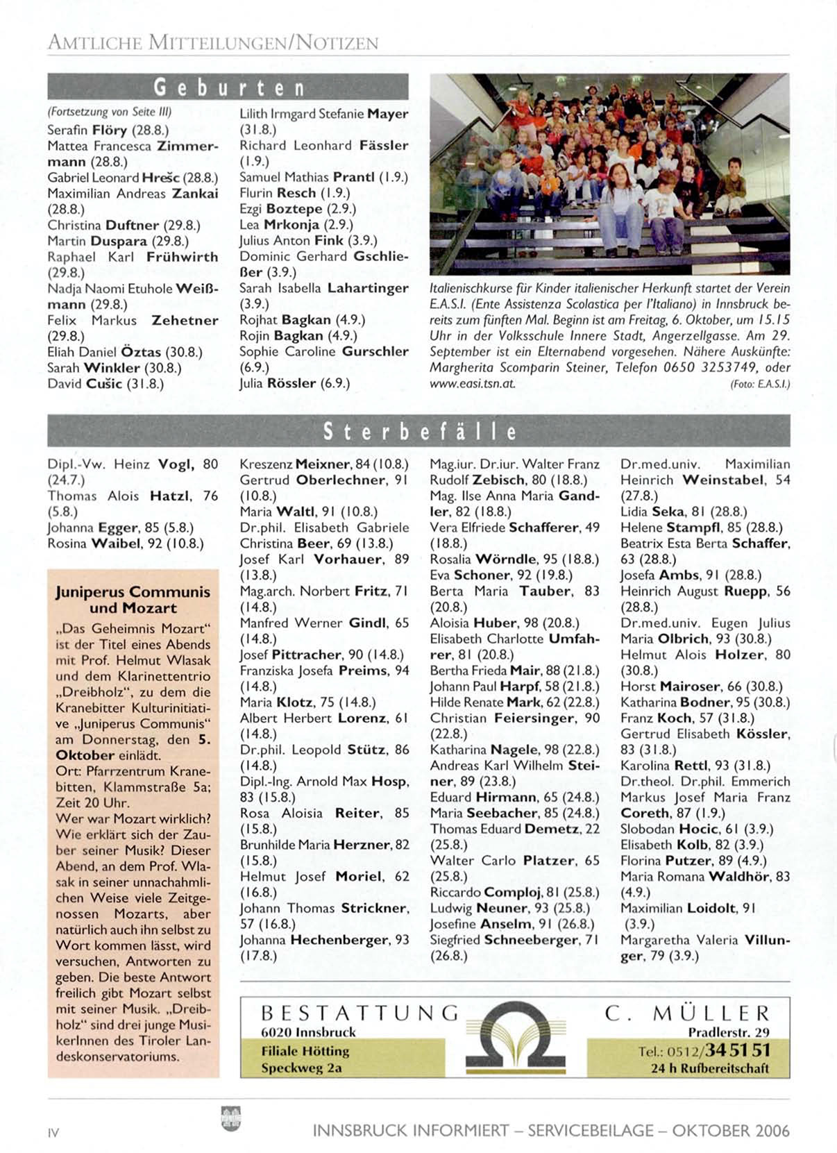 INNSBRUCK INFORMIERT - SERVICEBEILAGE - OKTOBER 2006