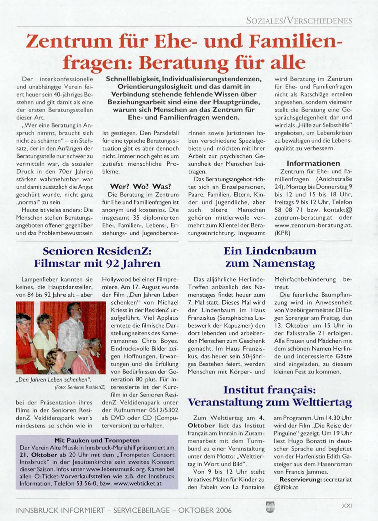 INNSBRUCK INFORMIERT - SERVICEBEILAGE - OKTOBER 2006