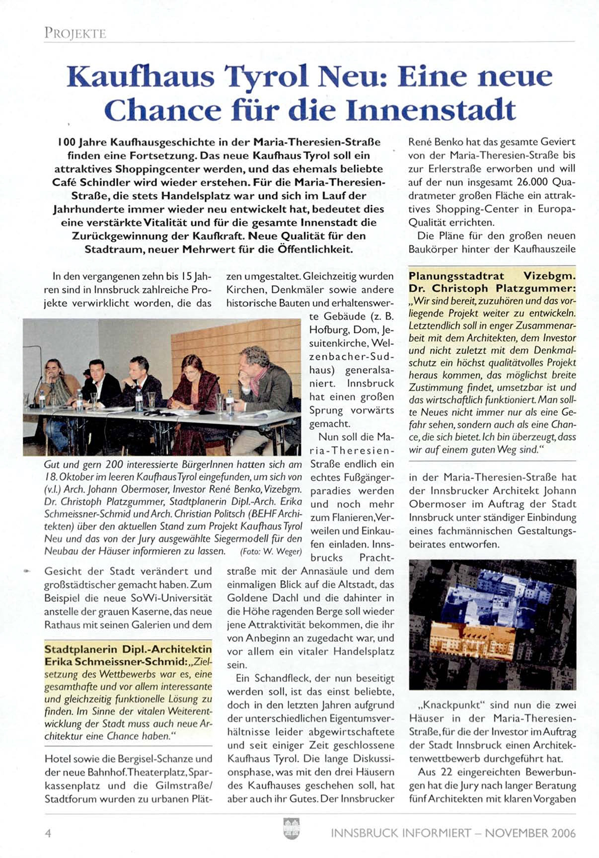 Schmeissner-Schmid und Arch. Christian Politsch (BEHF Archi- zum Planierendertekten) über den aktuellen Stand zum Projekt KaufhausTyrol