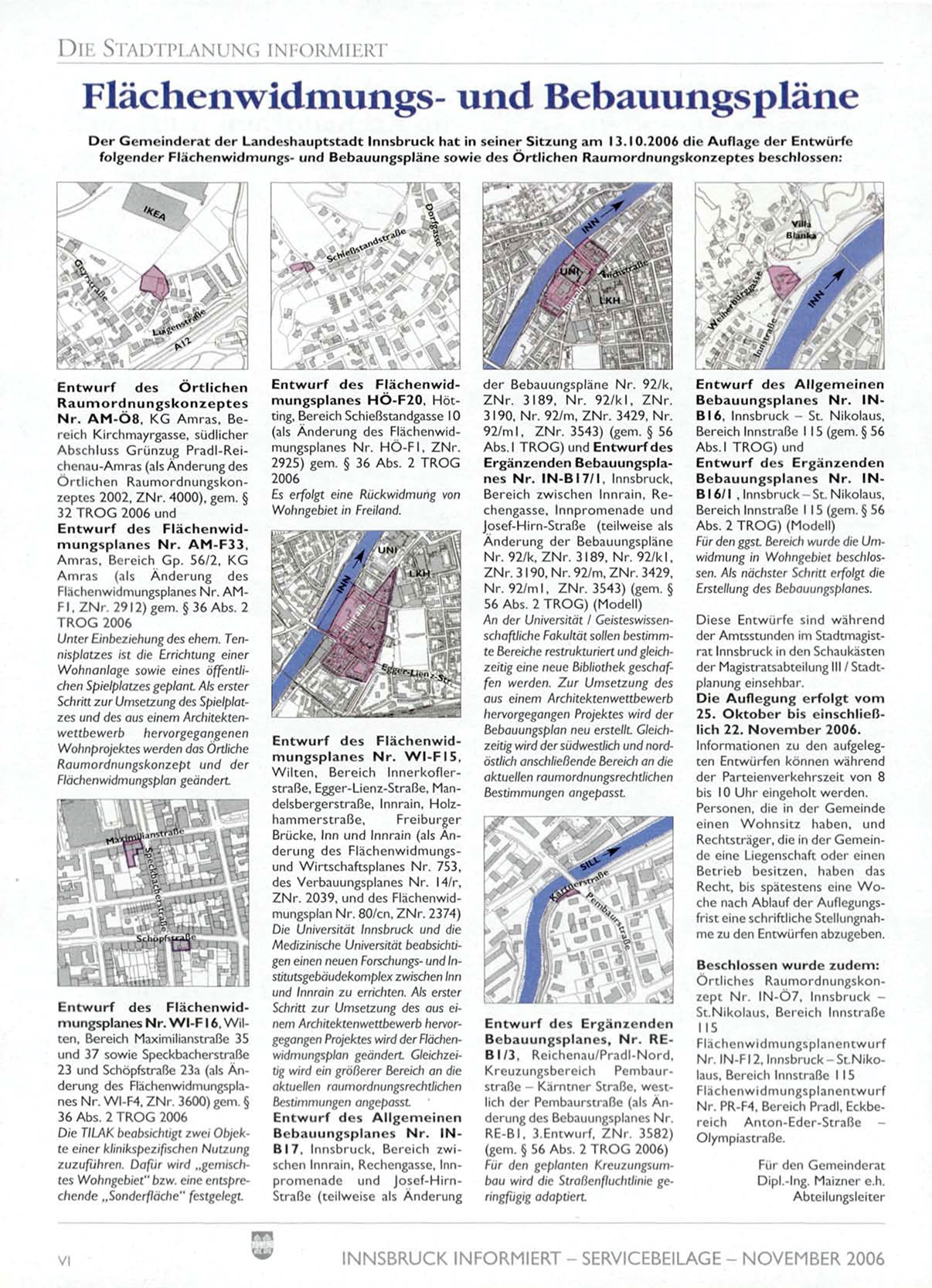 D e r G e m e i n d e r a t d e r L a n d e s h a u p t s t a d t I n n s b r u c k h a t i n s e i n e r S i t z u n g a m I 3.1 0 . 2 0 0 6 d i e A u f l a g e d e r E n t w ü r f e