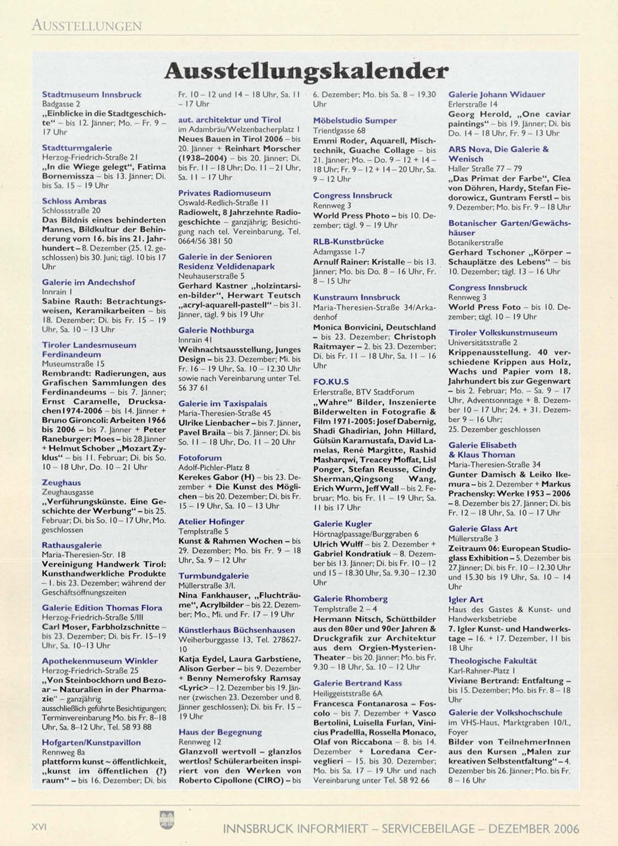 INNSBRUCK INFORMIERT - SERVICEBEILAGE - DEZEMBER 2006