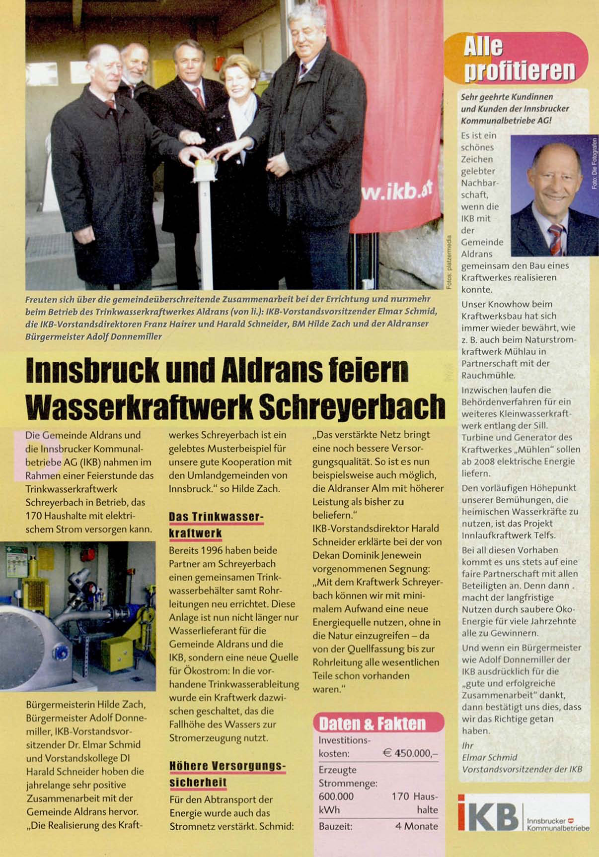 beim Betrieb des Trinkwasserkraftwerkes Aldrans (von li.): IKB-Vorstandsvorsitzender Elmar Schmid,