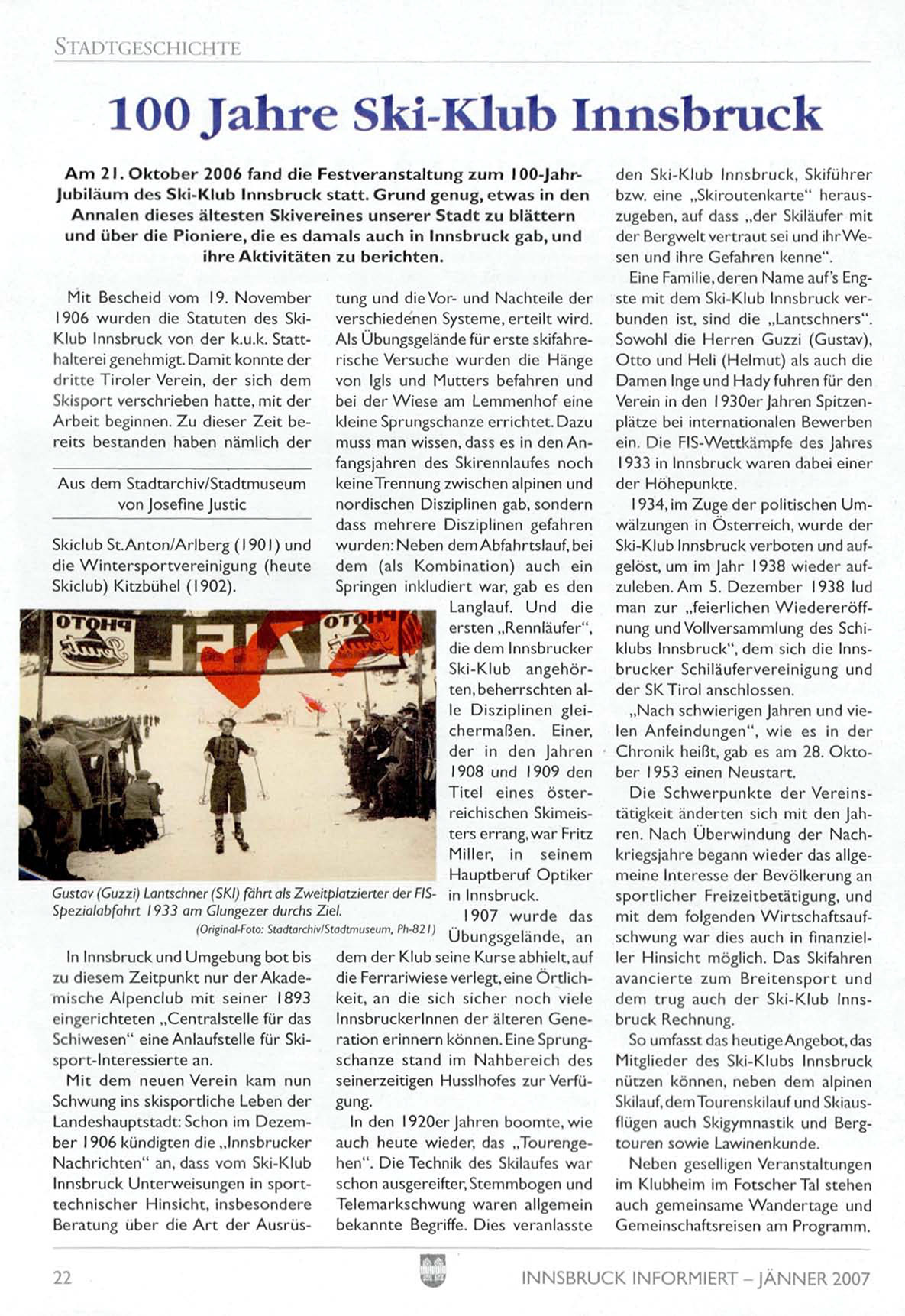 A m 2 1 . O k t o b e r 2006 f a n d d i e F e s t v e r a n s t a l t u n g z u m 100-JahrJ u b i l ä u m des S k i - K l u b I n n s b r u c k s t a t t . G r u n d g e n u g , e t w a s in d e n