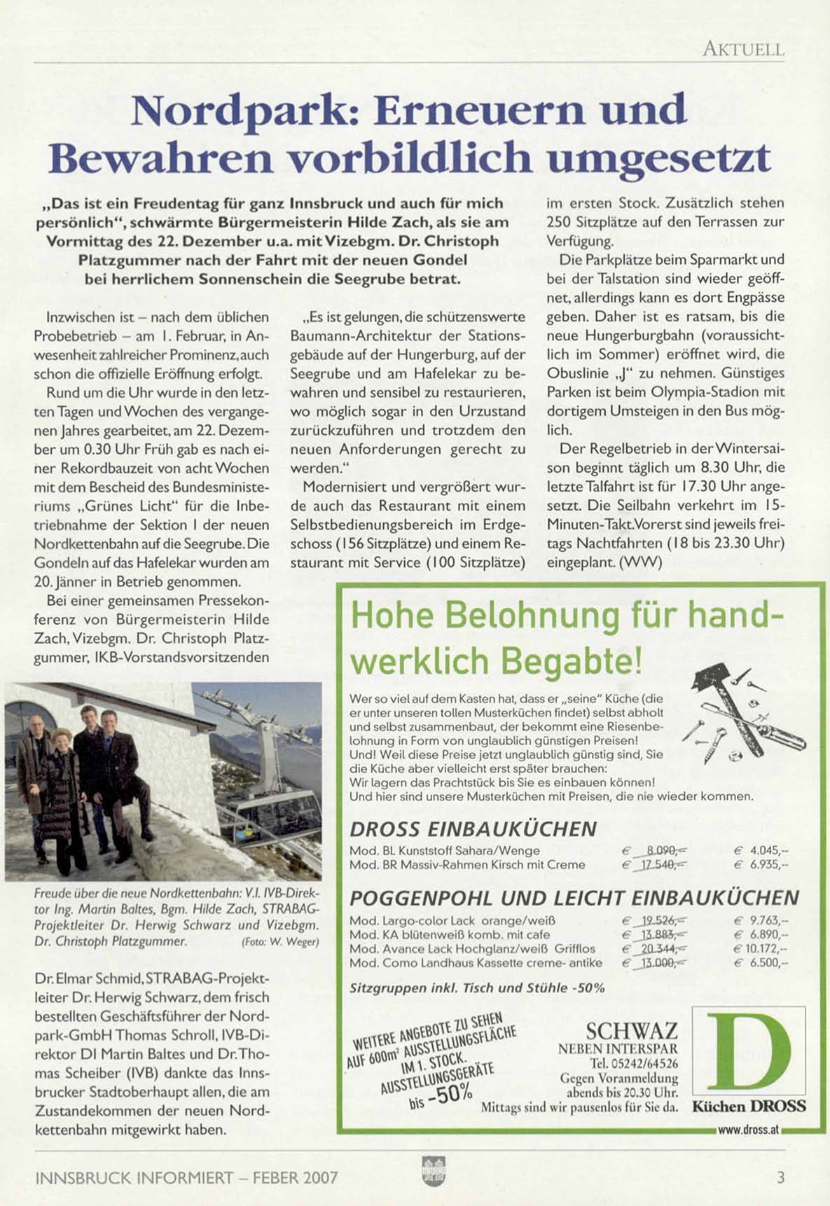 bestellten Geschäftsführer der N o r d park-GmbH Thomas Schroll, IVB-DiSCHWAZ
