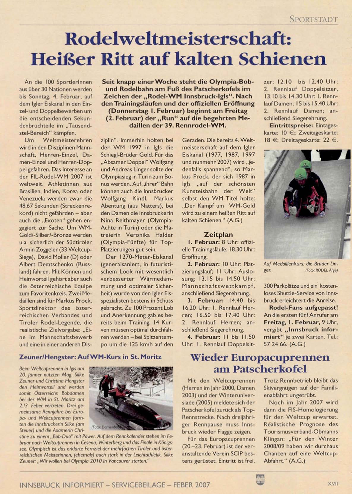 INNSBRUCK INFORMIERT - SERVICEBEILAGE - FEBER 2007