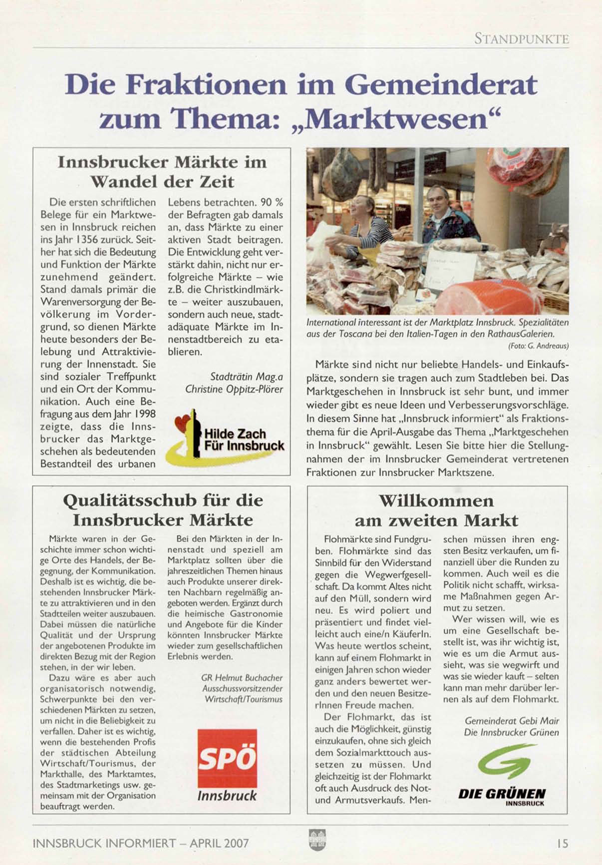 Deshalb ist es wichtig, die bestehenden Innsbrucker Märkte zu attraktivieren und in den