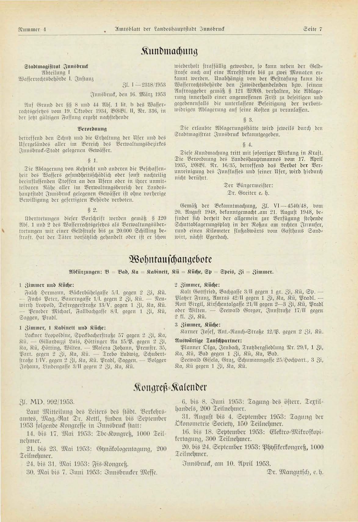 Innsbruck, den !<;, März 1953