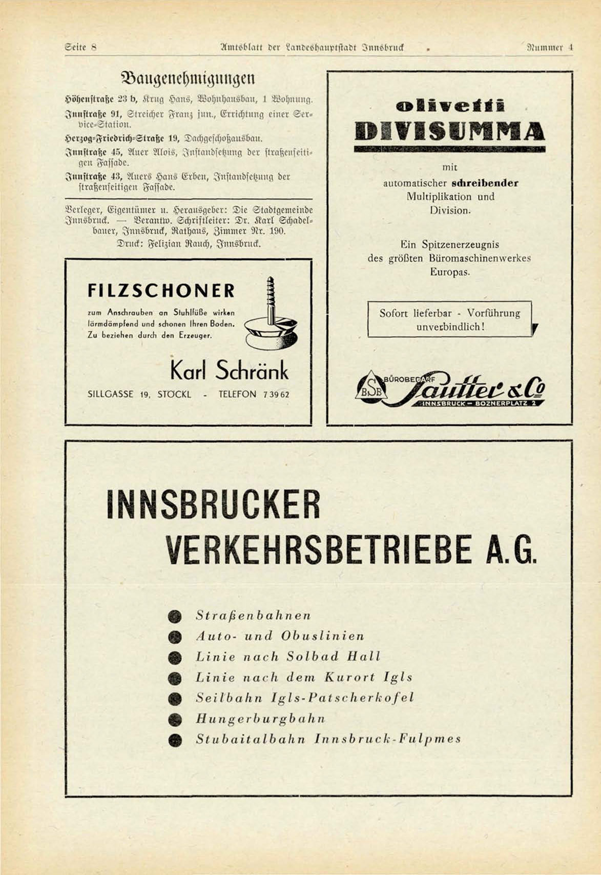 Innsbruck. — Vcrantw. Schriftleiter: Dr. Karl Schadclbaucr, Innsbruck, Rathans, Zimmer Nr. 190.