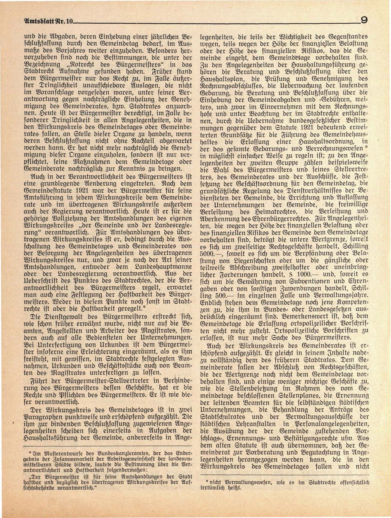 im Voranschlage vorgesehen waren, unter seiner Verantwortung gegen nachträgliche Einholung der Genehmigung des Gemeinderates, bzw. Stadtrates anzuordnen. Heute ist der Bürgermeister berechtigt, im Falle besonderer Dringlichkeit in allen Angelegenheiten, die in