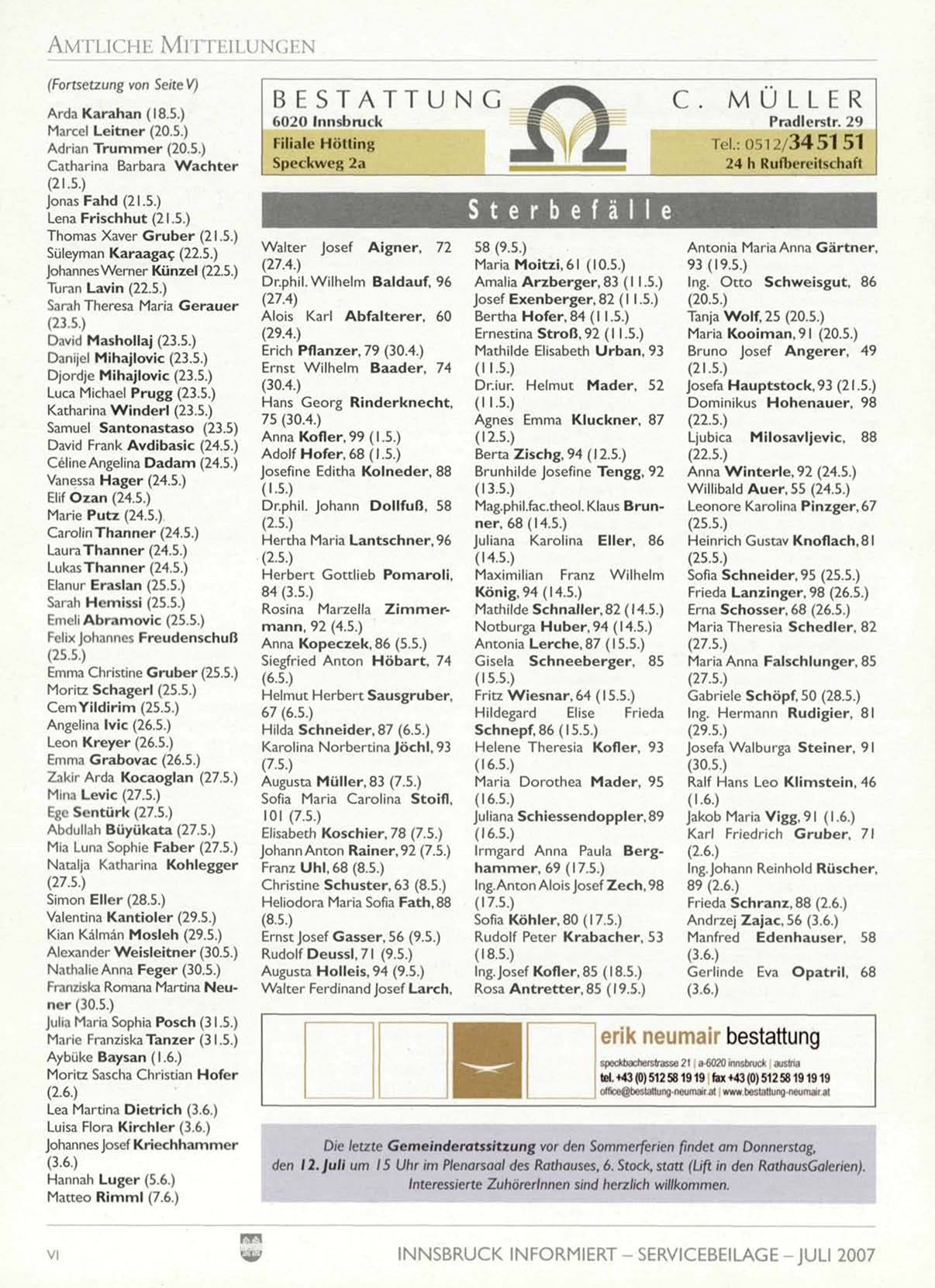 INNSBRUCK INFORMIERT - SERVICEBEILAGE -JULI 2007