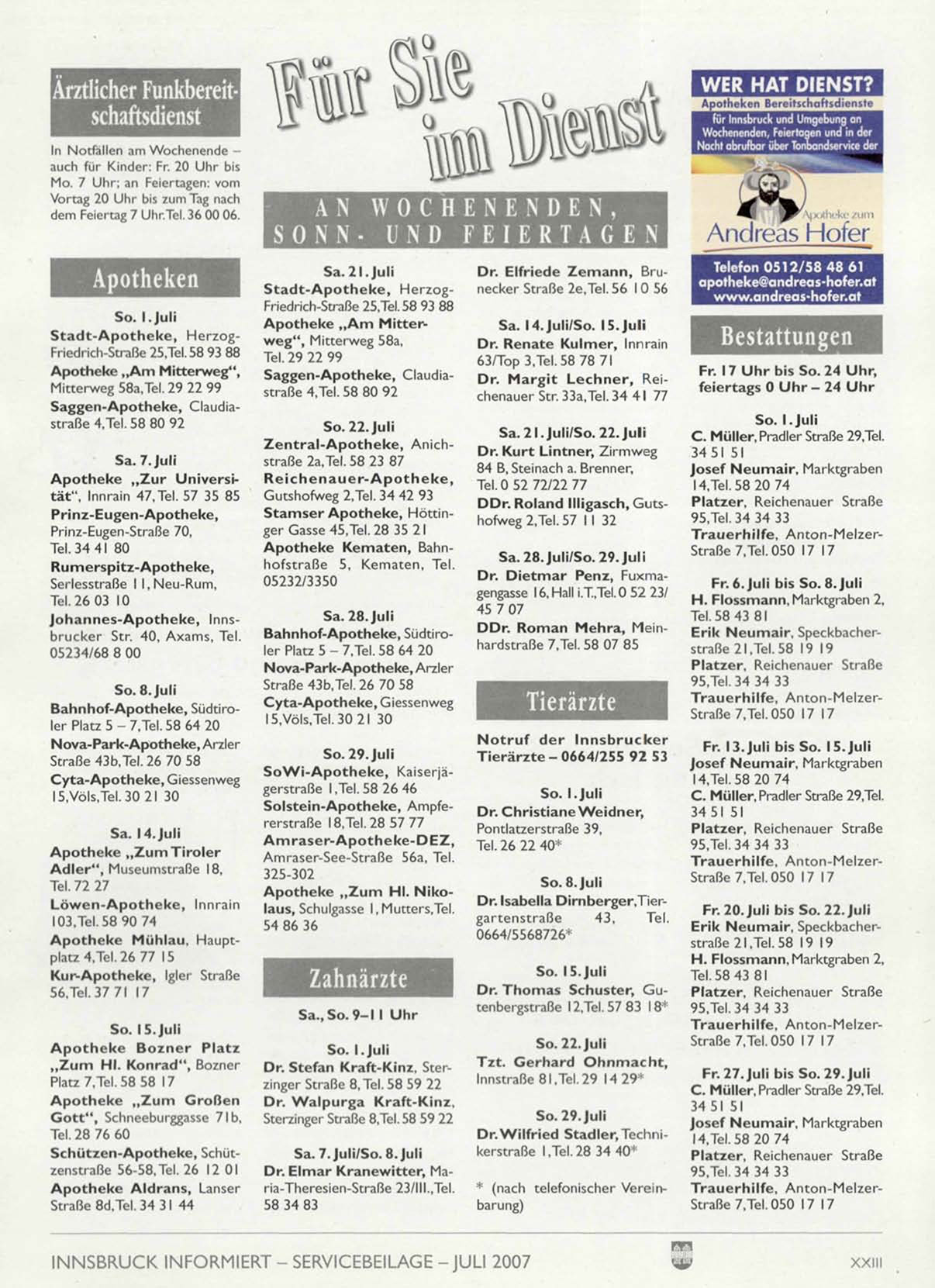 INNSBRUCK INFORMIERT - SERVICEBEILAGE -JULI 2007