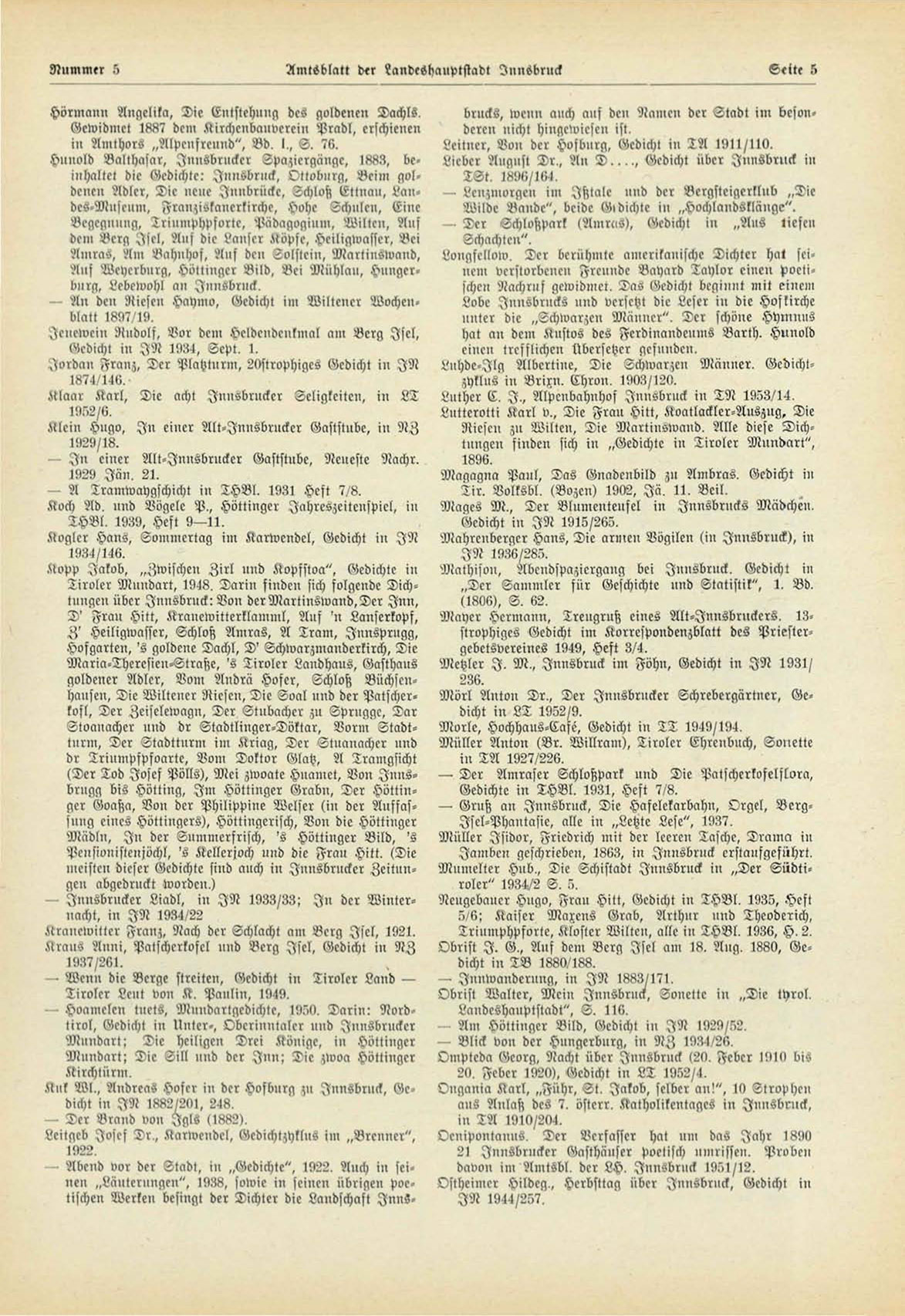 Tiroler Mundart, 1948. Tarin finden sich folgende Dichtungen über Innsbruck: Von der Martinswand, Der I n n ,
