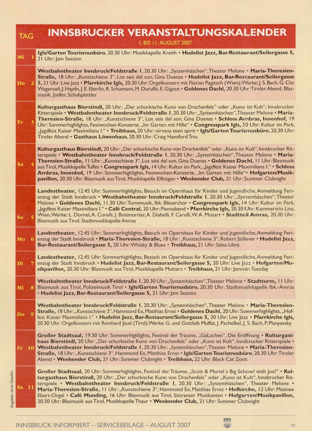 INNSBRUCK INFORMIERT - SERVICEBEILAGE -AUGUST 2007