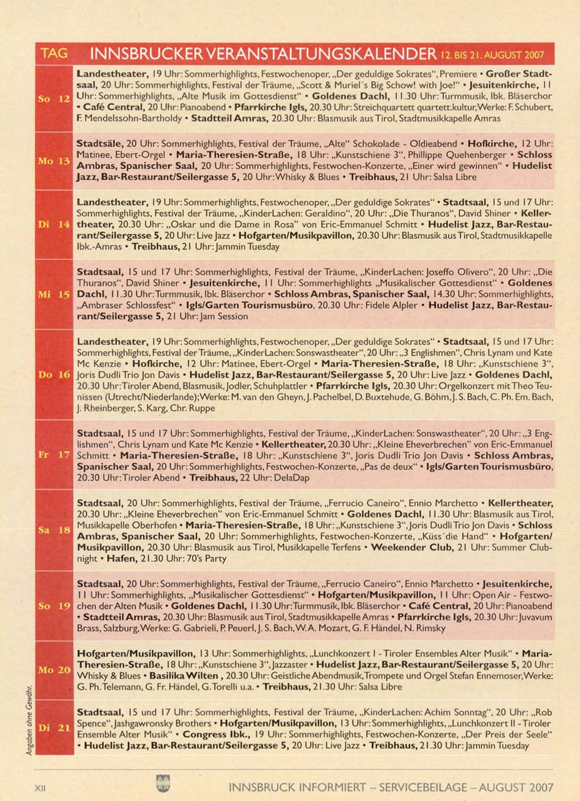 I N N S B R U C K E R V E R A N S T A L T U N G S K A L E N D E R 12. BIS 21. AUGUSTA»?