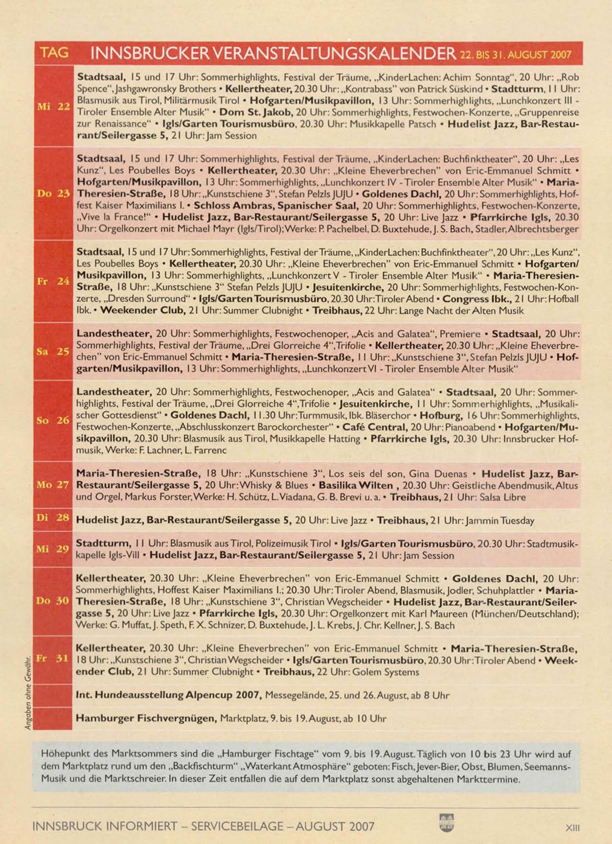 INNSBRUCKER VERANSTALTUNGSKALENDER 22.BIS3I.AUGUST2007