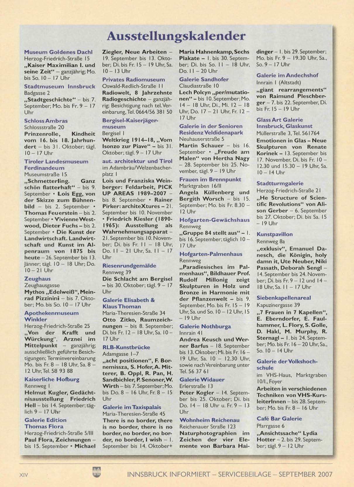 INNSBRUCK INFORMIERT - SERVICEBEILAGE - SEPTEMBER 2007