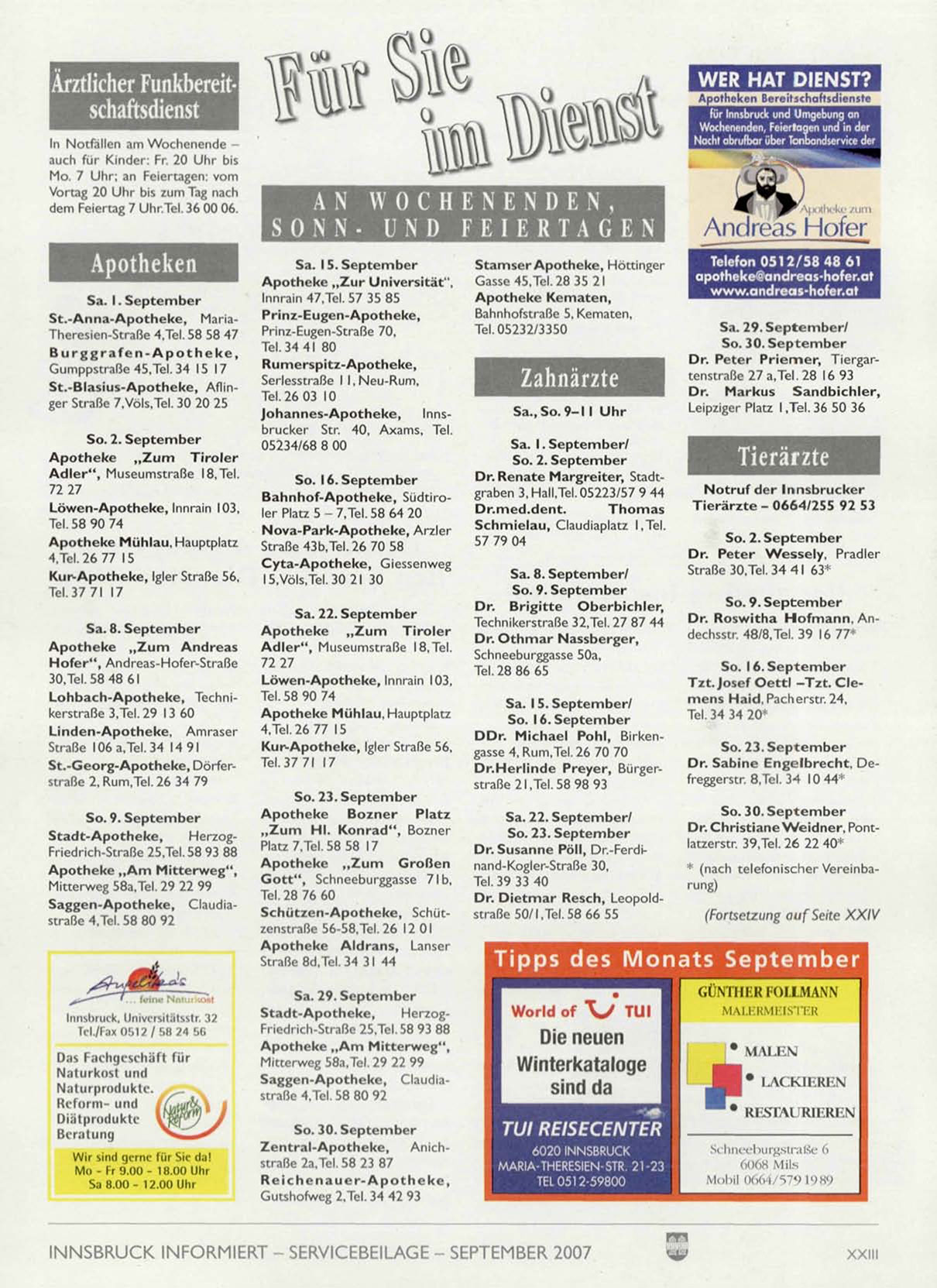 INNSBRUCK INFORMIERT - SERVICEBEILAGE - SEPTEMBER 2007