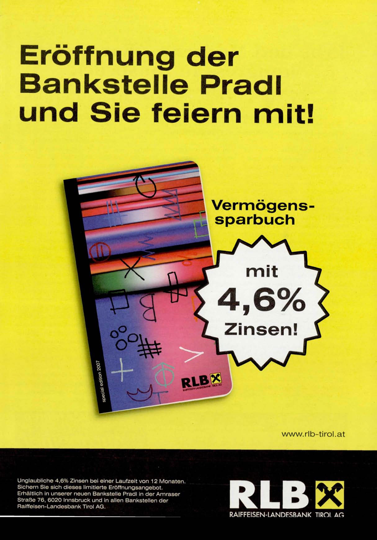 Erhältlich In unserer neuen Bankstelle Pradl in der Amraser