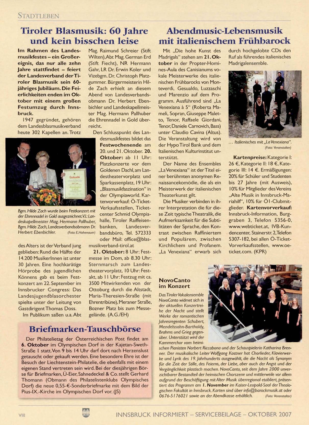 INNSBRUCK INFORMIERT - SERVICEBEILAGE - OKTOBER 2007