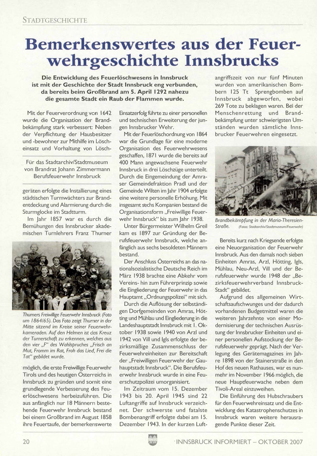 erwehr Innsbruck wurde in eine FeuTirols und des heutigen Österreichs in
