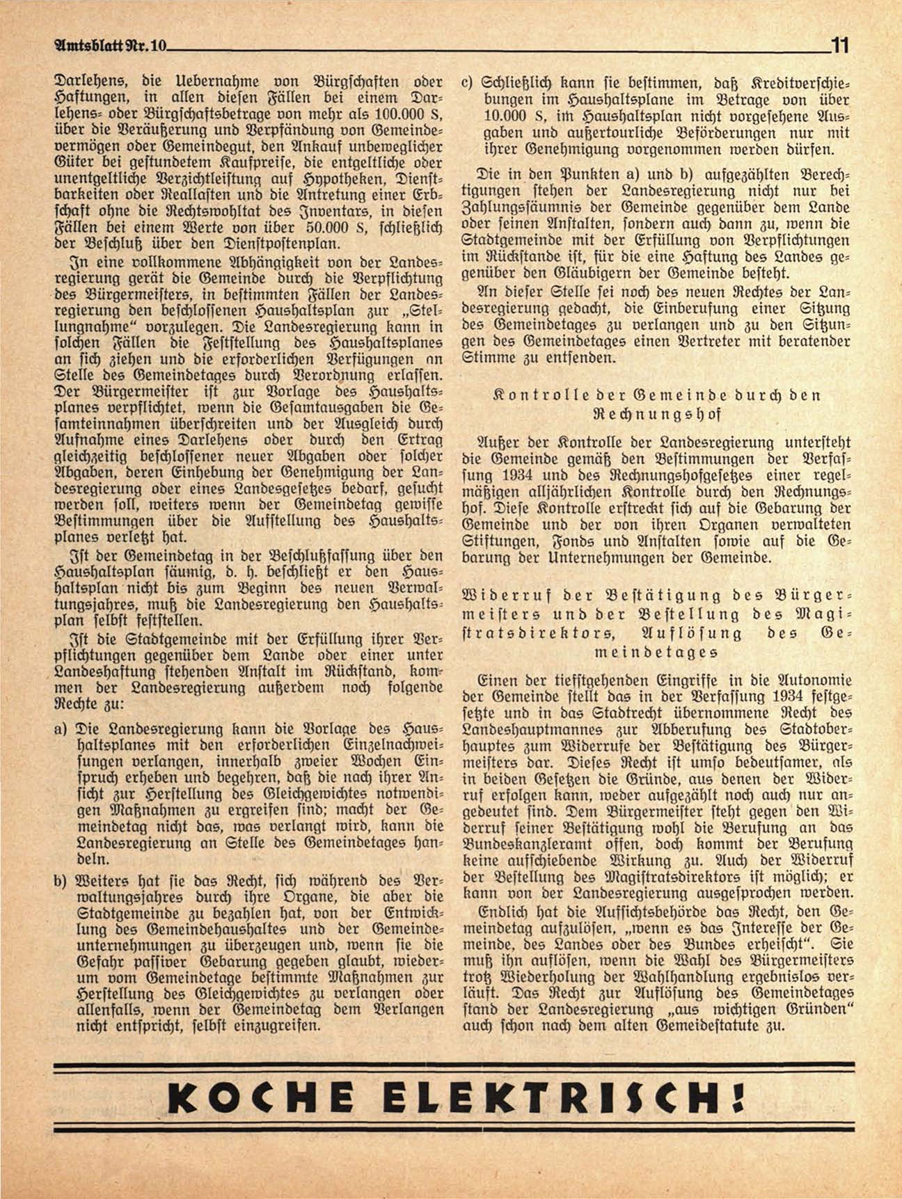 der Gemeinde stellt das in der Verfassung 1934 festgesetzte und in das Etadtrecht übernommene Recht des