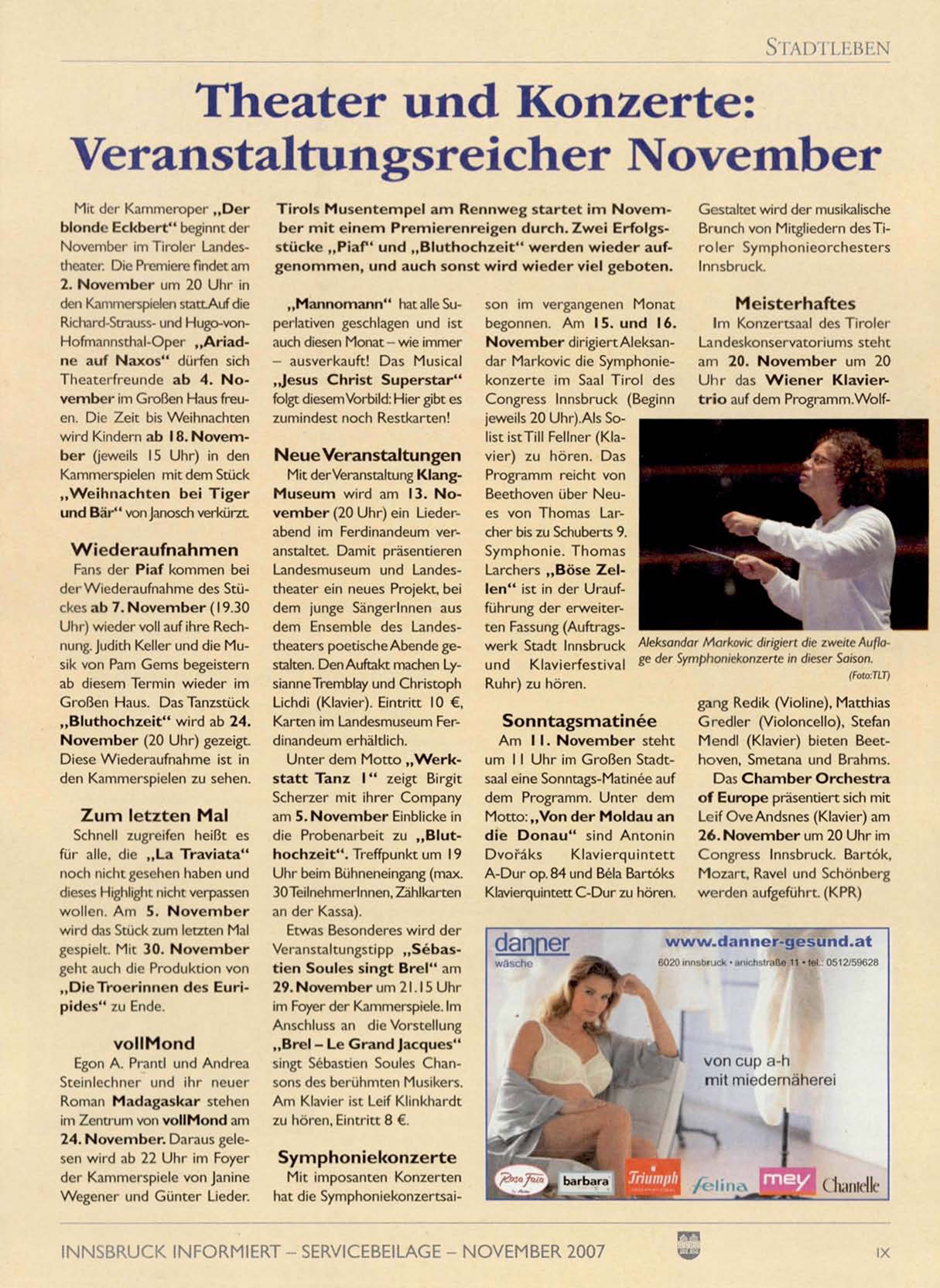 INNSBRUCK INFORMIERT - SERVICEBEILAGE - NOVEMBER 2007