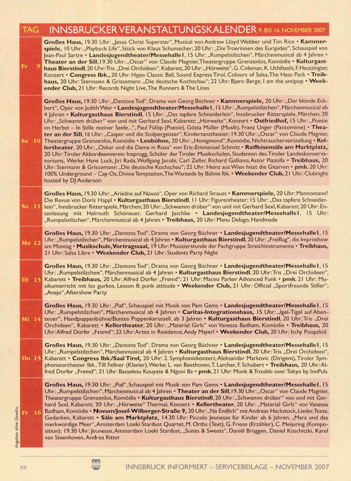 INNSBRUCKER VERANSTALTUNGSKALENDER9.B,si6.NovEMBER2oo7