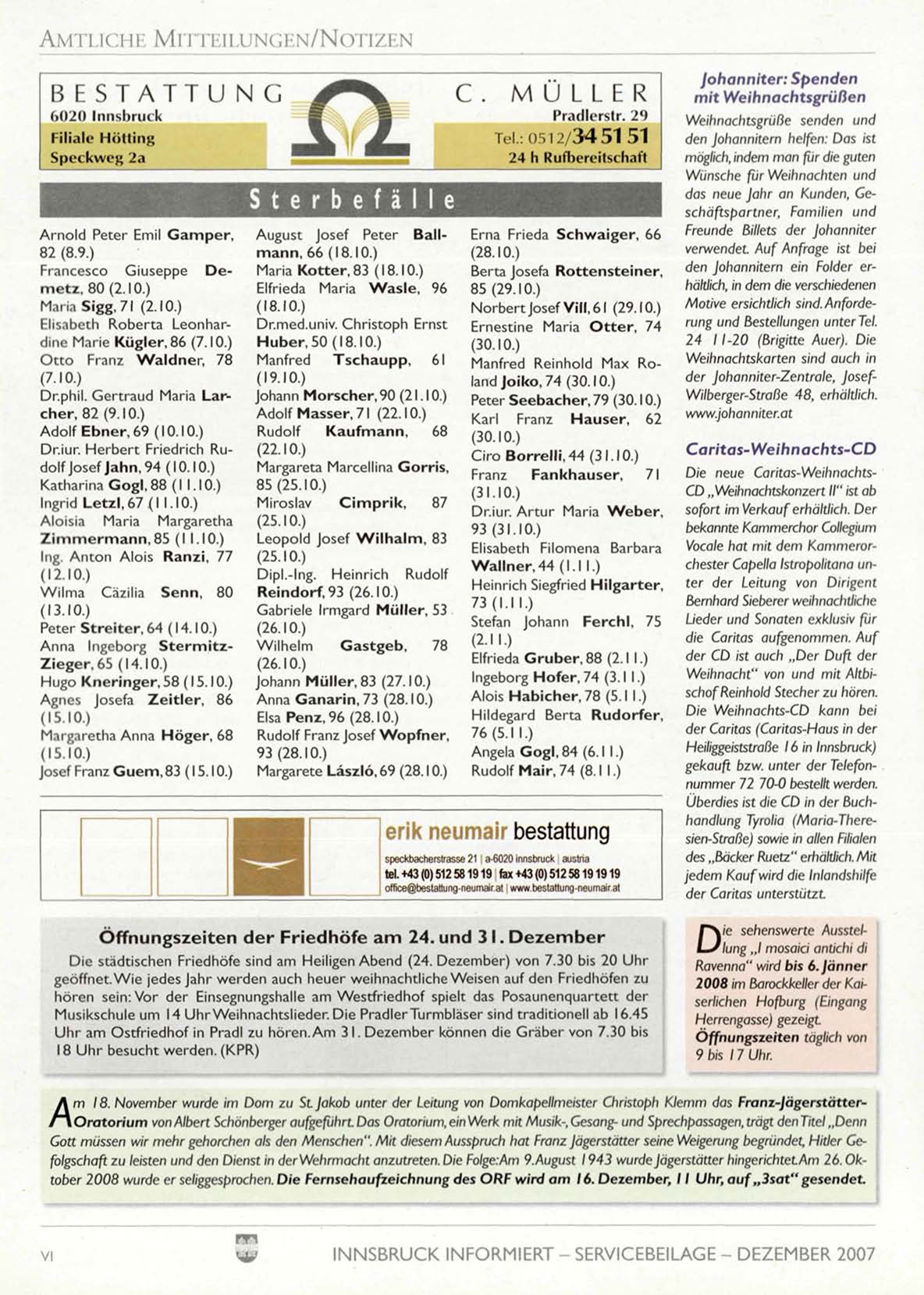 INNSBRUCK INFORMIERT - SERVICEBEILAGE - DEZEMBER 2007