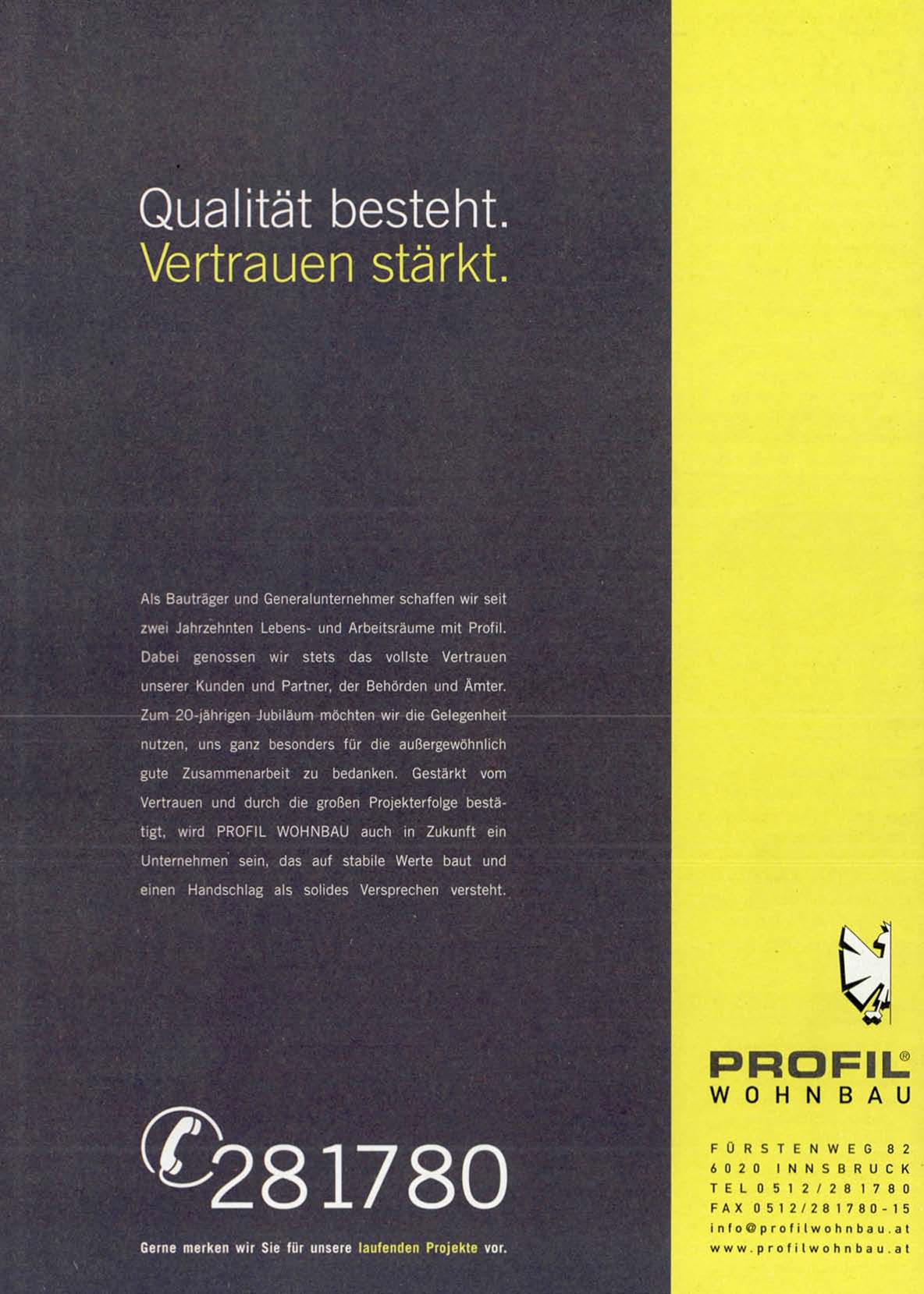 Vertrauen und durch die großen Projekterfolge bestätigt, wird PROFIL WOHNBAU auch in Zukunft ein