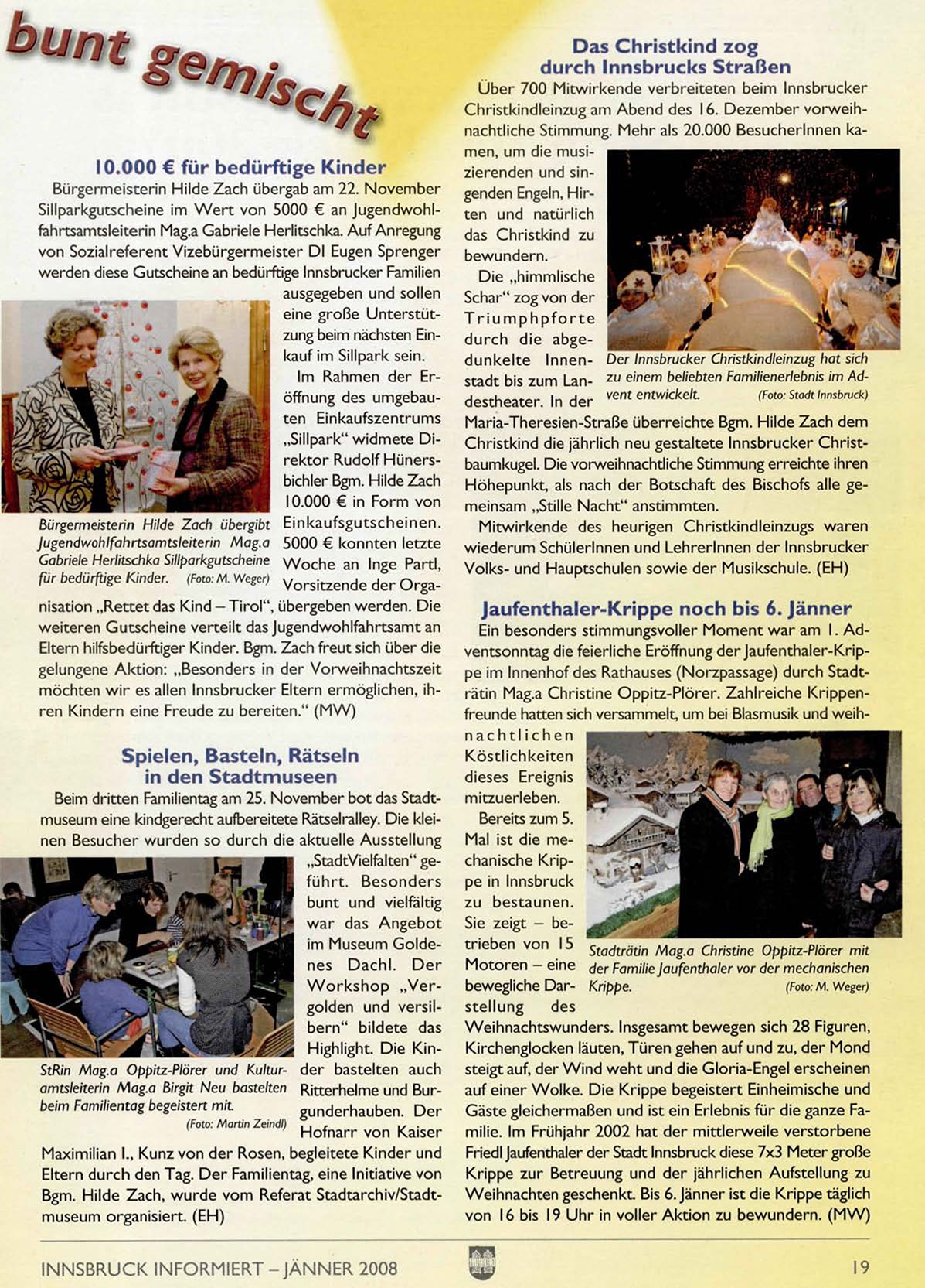 möchten w i r es allen Innsbrucker Eltern ermöglichen, ihren Kindern eine Freude zu bereiten." ( M W )