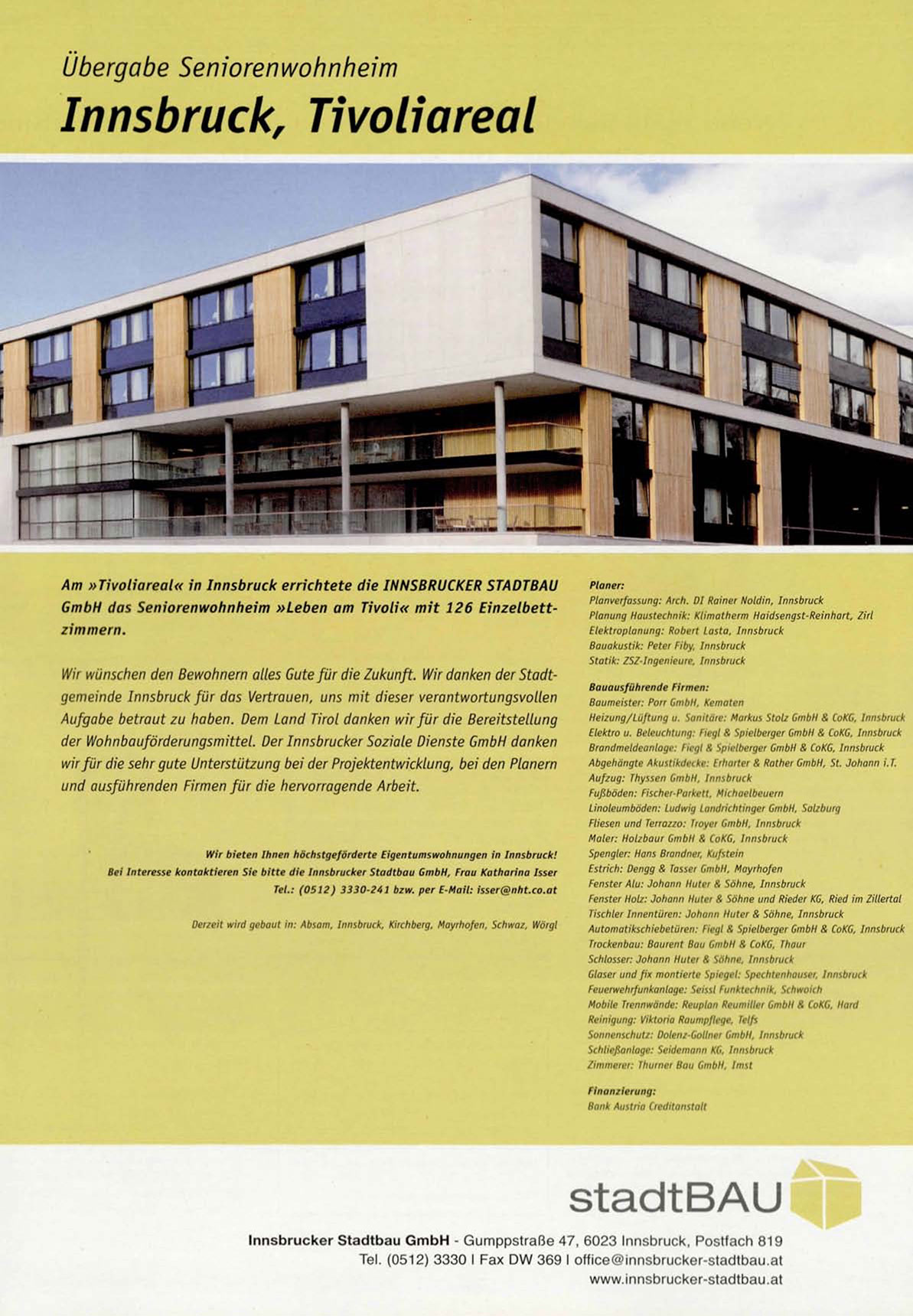 Tel. (0512) 3330 I Fax DW 369 I office@innsbrucker-stadtbau.at