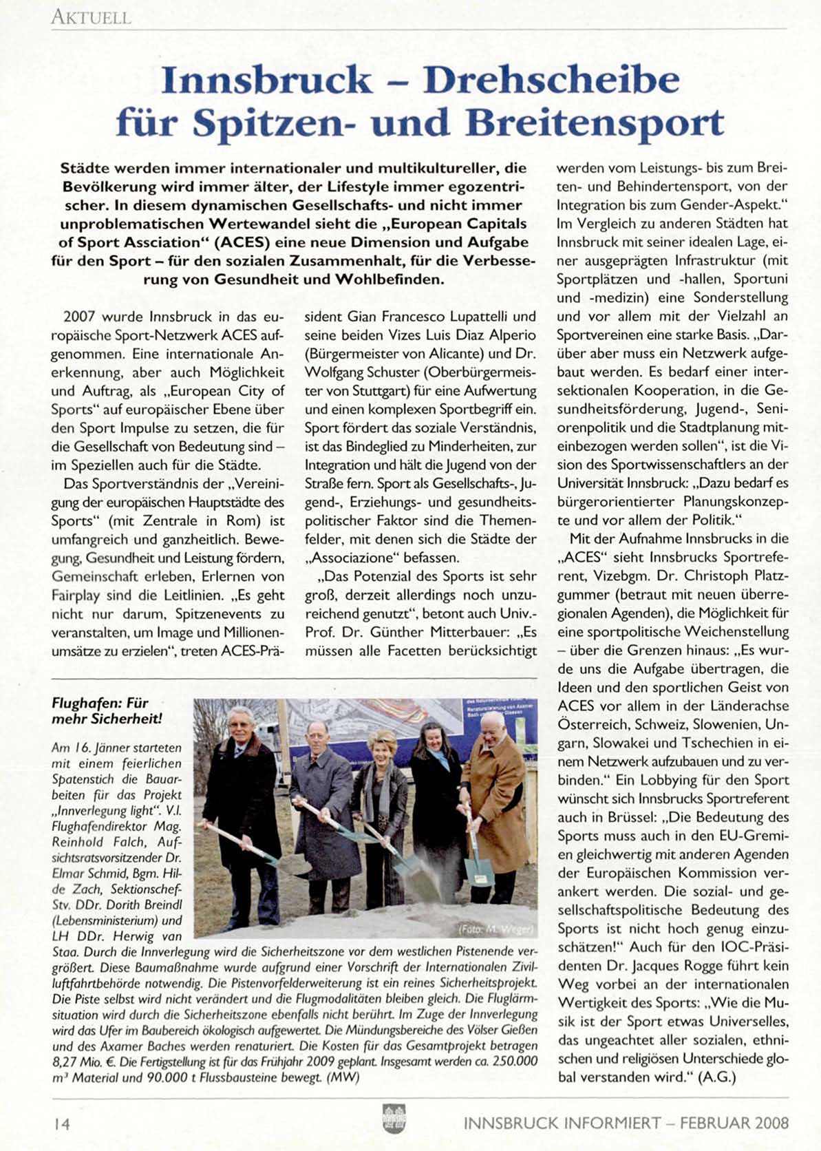 2007 wurde Innsbruck in das europäische Sport-Netzwerk ACES aufgenommen. Eine internationale A n erkennung, aber auch Möglichkeit