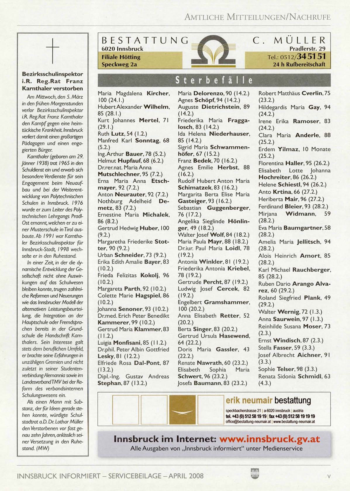 INNSBRUCK INFORMIERT - SERVICEBEILAGE -APRIL 2008